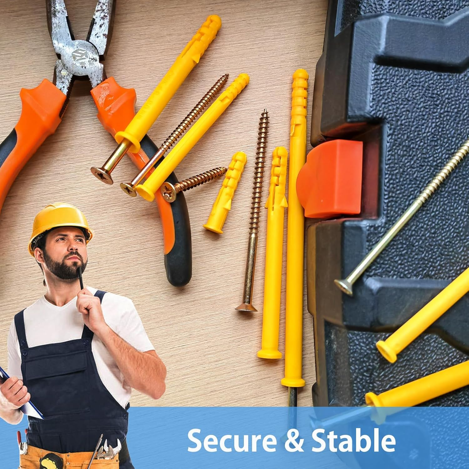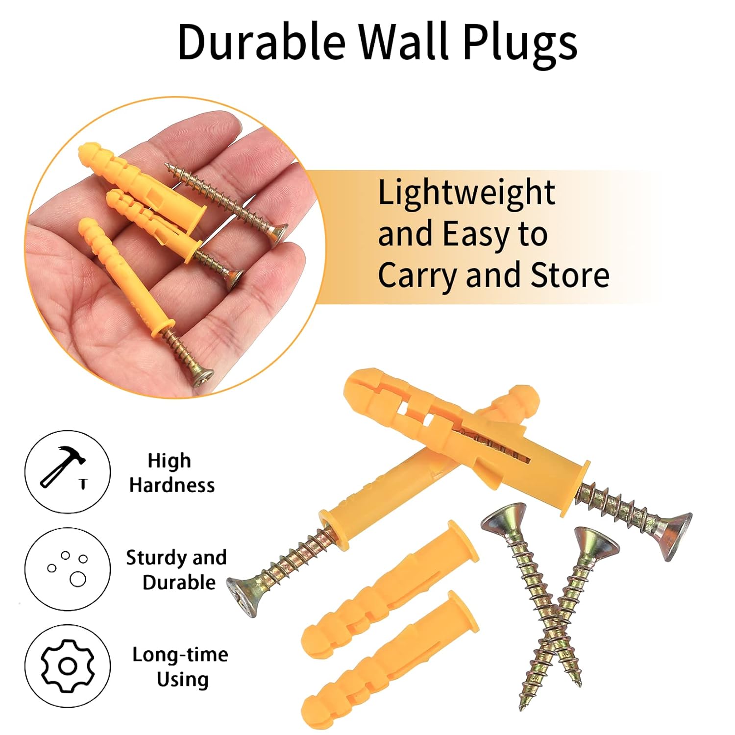 - The expansion wall plug is made of Plastic material with good flexibility, which is not easy to break. The self-tapping screws are made of high-strength carbon steel, which is corrosion resistance, and oxidation resistance, durable for long time use.