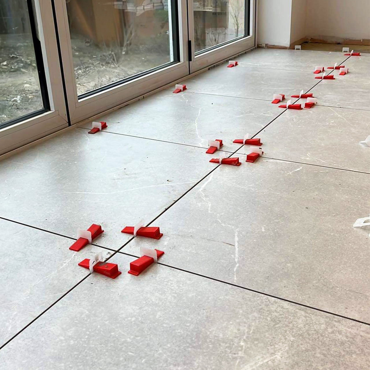 - The tile leveling system ensures flatness between tiles avoiding movement of the mortar setting